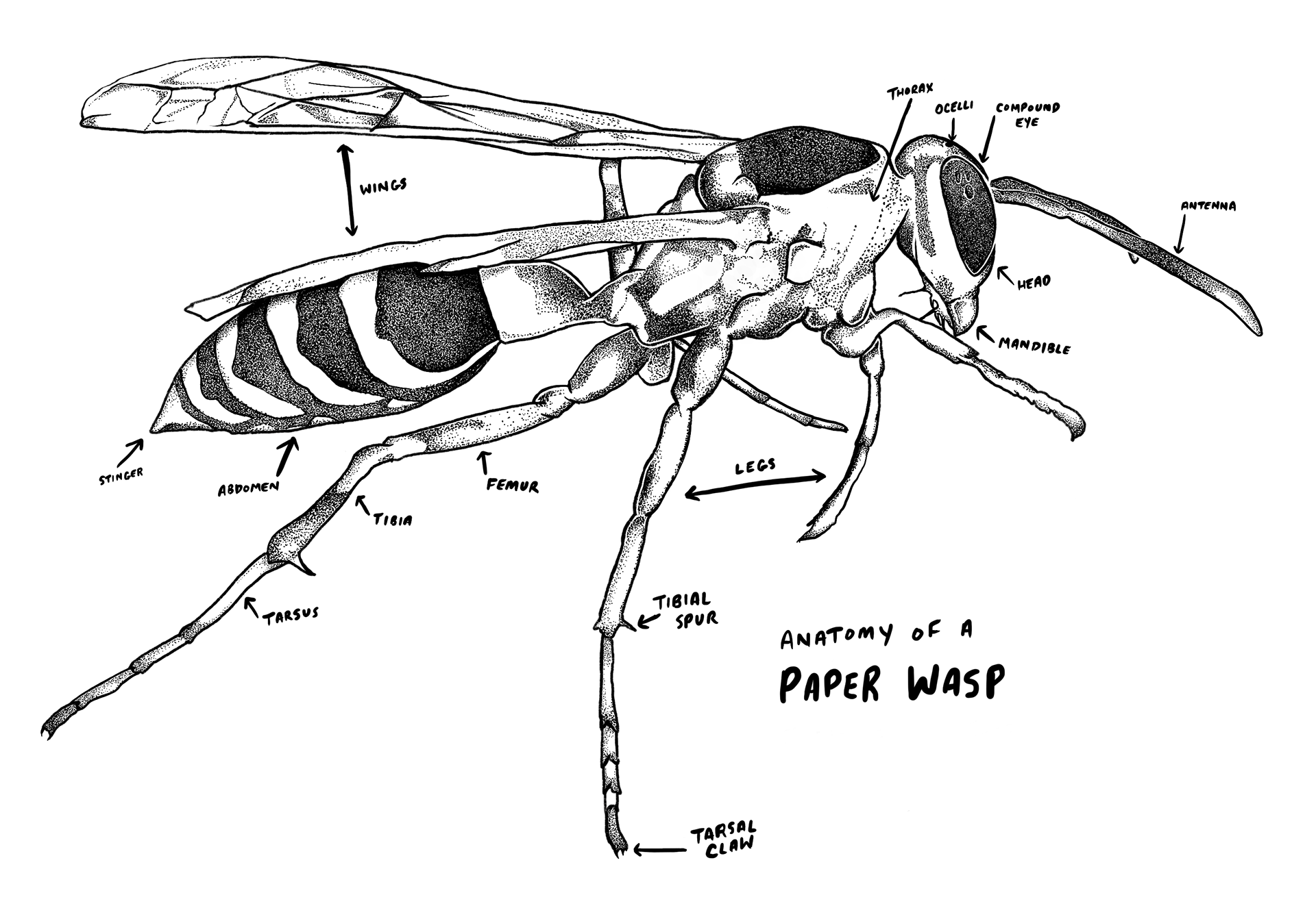 ANATOMY OF A PAPER WASP / Tools: Sketchbook, Sakura Pigma Micron Black Pens, Adobe Fresco, Adobe Photoshop, Adobe Illustrator, iPad, Apple Pencil, Canon EOS Rebel SL1 Camera