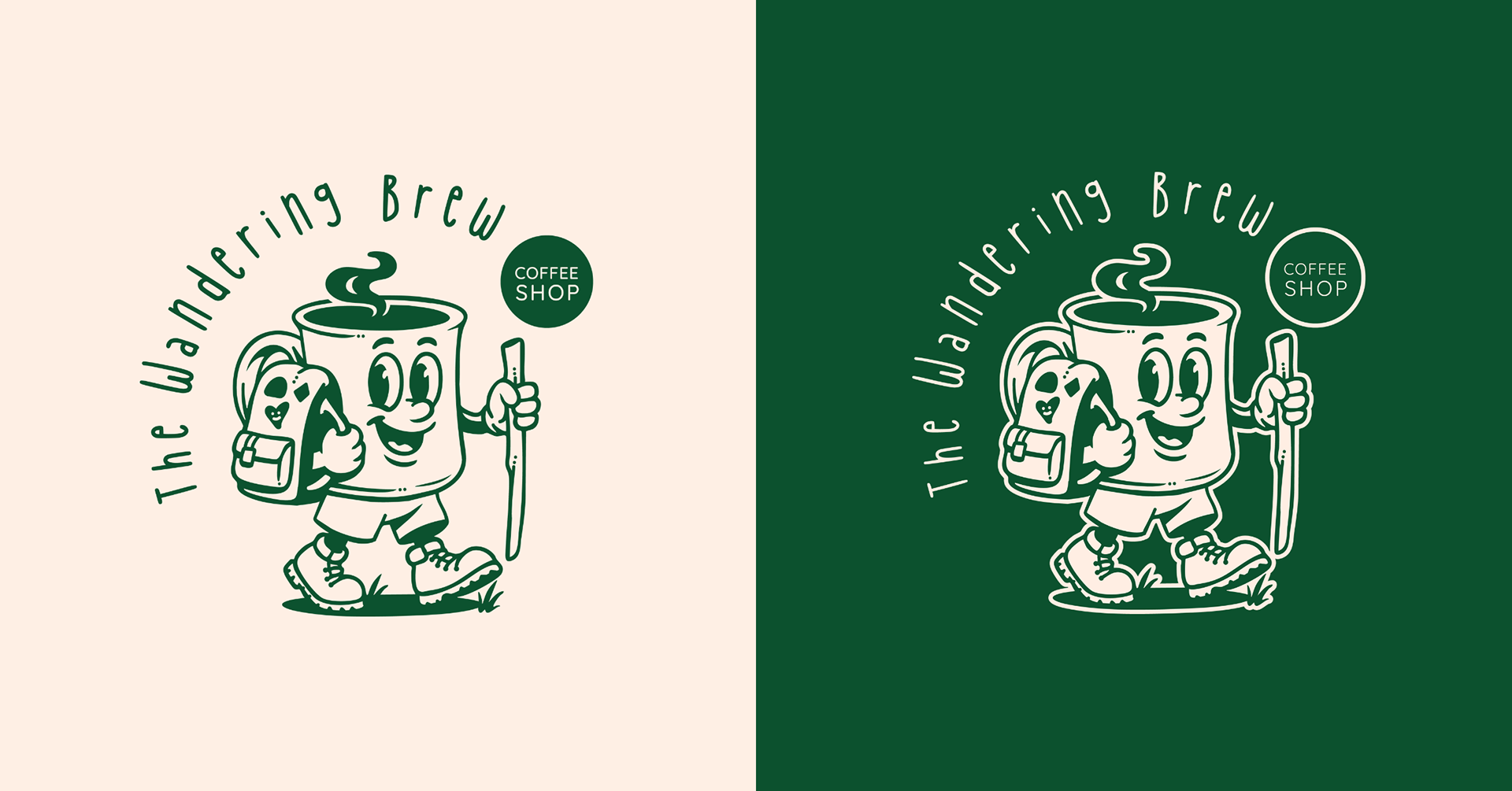 To bring this vision to life, I created a hand-drawn coffee cup mascot wearing boots and a backpack, symbolizing wanderlust, approachability, and coffee meant to travel. The identity was supported by a nature-inspired color palette and friendly, functional typography system to ensure clarity across mobile and outdoor applications.