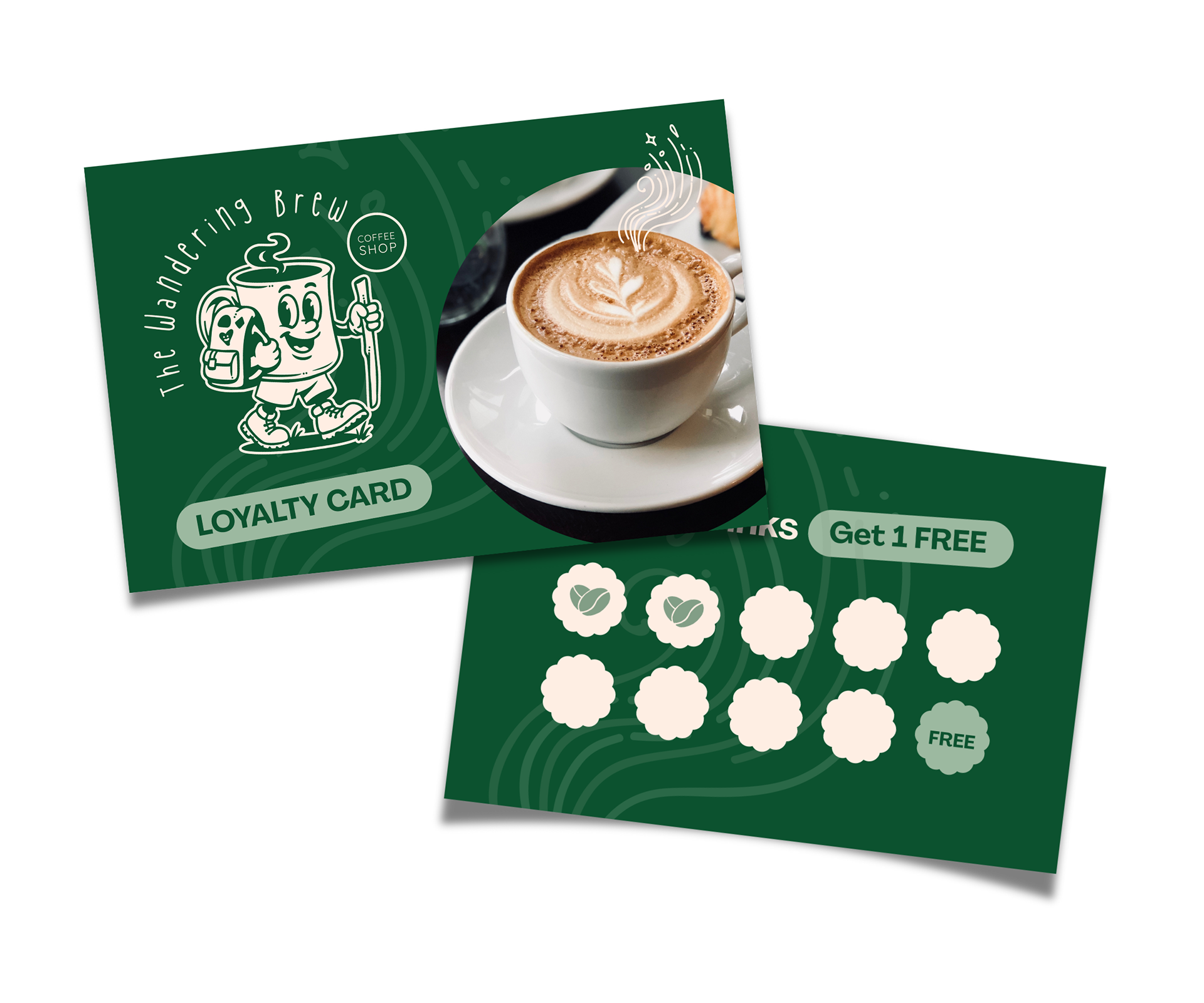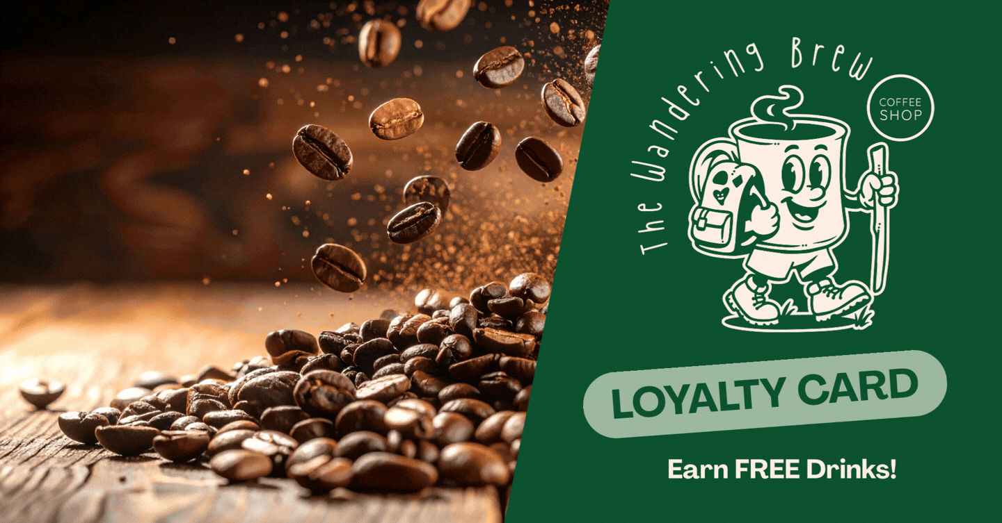 As a new and growing brand, The Wandering Brew’s identity is currently driven primarily through foundational design touchpoints. I developed customer loyalty cards, a website banner, and branded coffee cups to establish a consistent, welcoming visual presence from the start. Each application focuses on clarity, warmth, and approachability, helping define the brand’s tone while laying the groundwork for future growth. Together, these pieces form an early but cohesive system that supports both in-person and digital engagement.